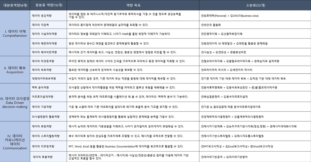 ① 지목 역량 : 목적에 맞는 데이터 확보 / 같은 가설을 세워 데이터의 형태로 표현