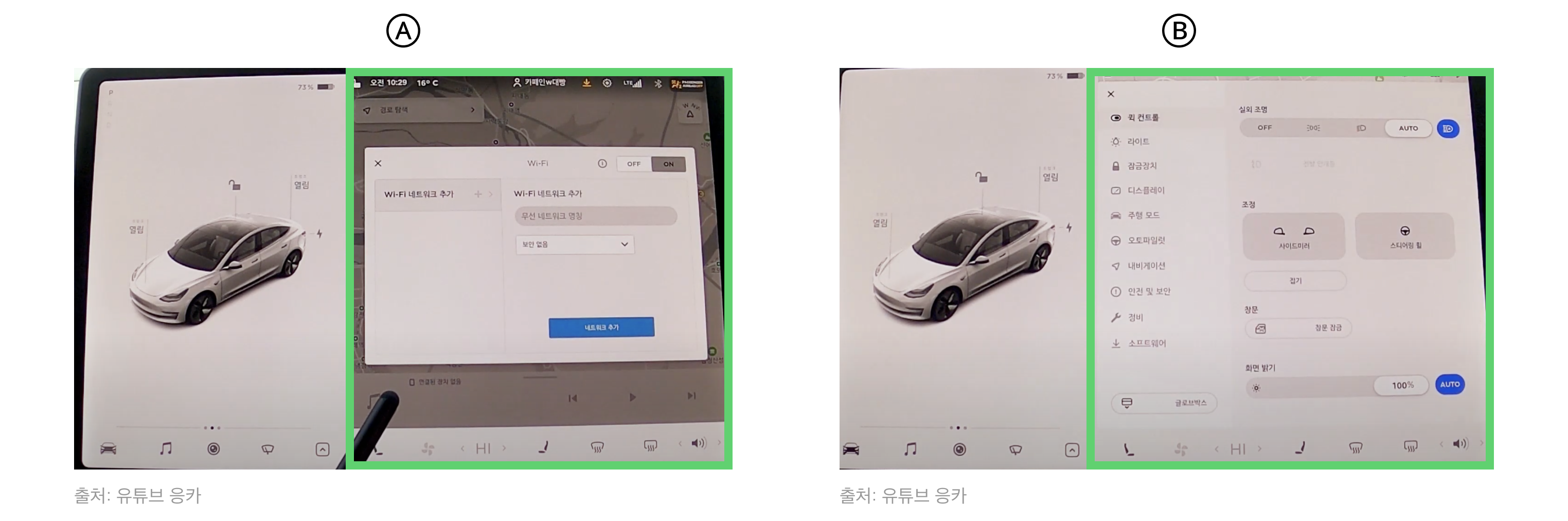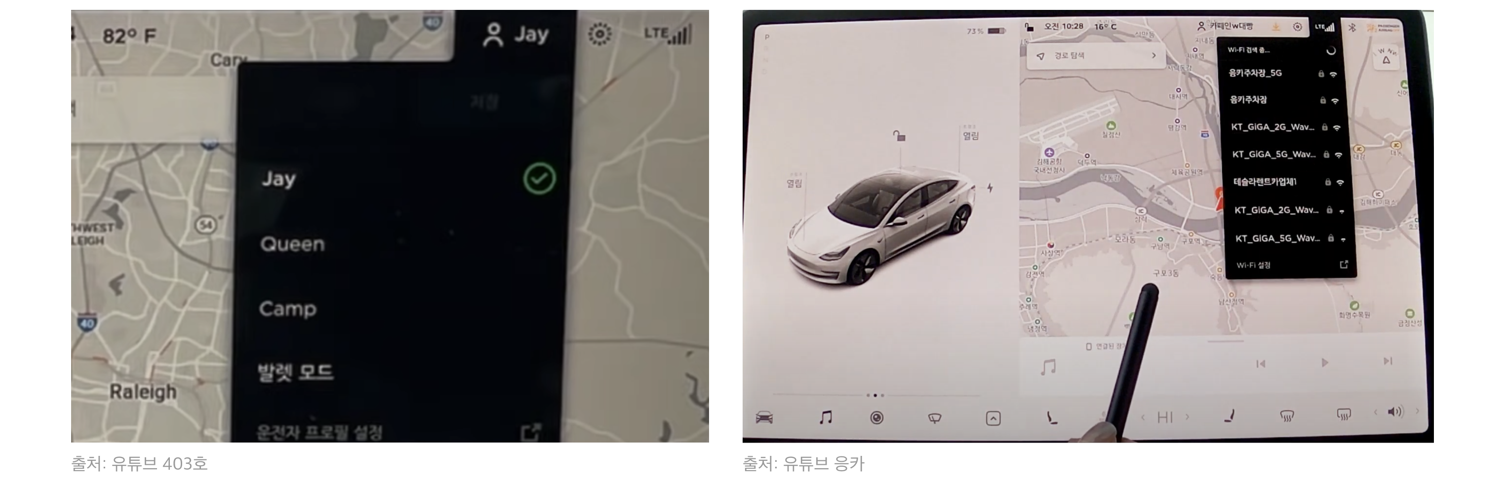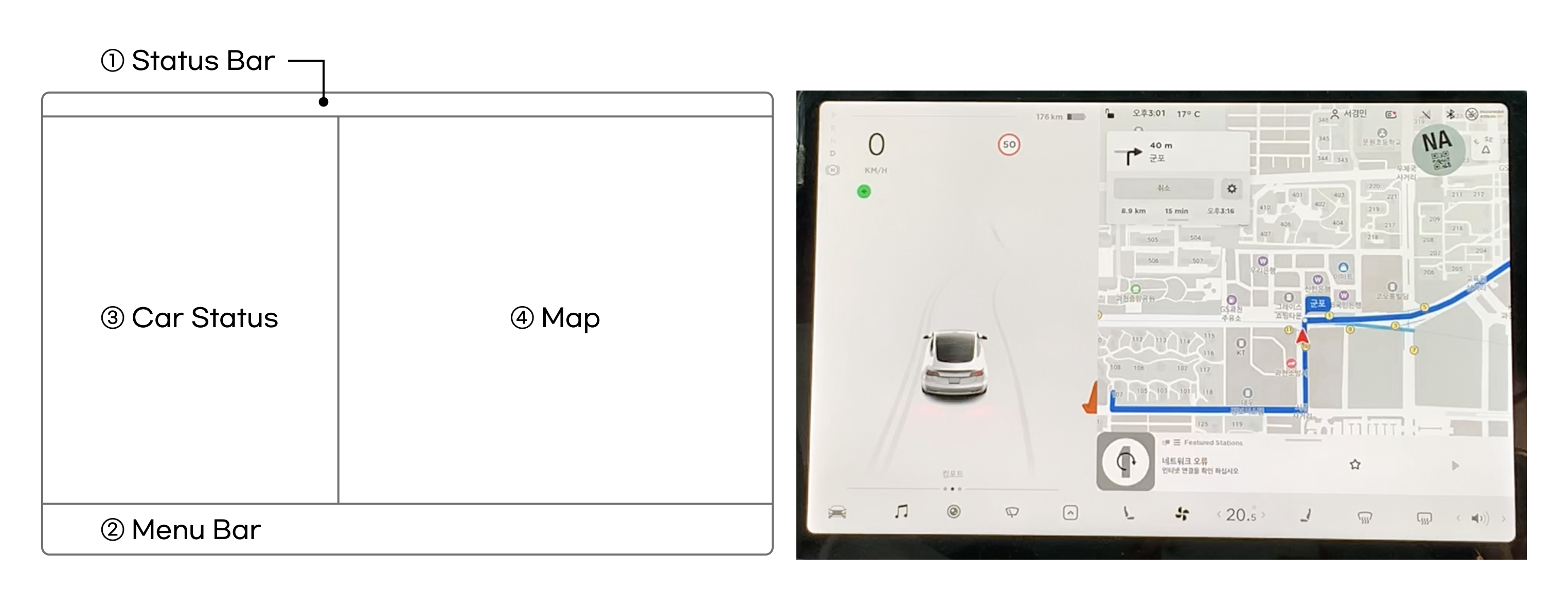 먼저 테슬라의 기본 홈 화면 구조는 다음과 같아요.