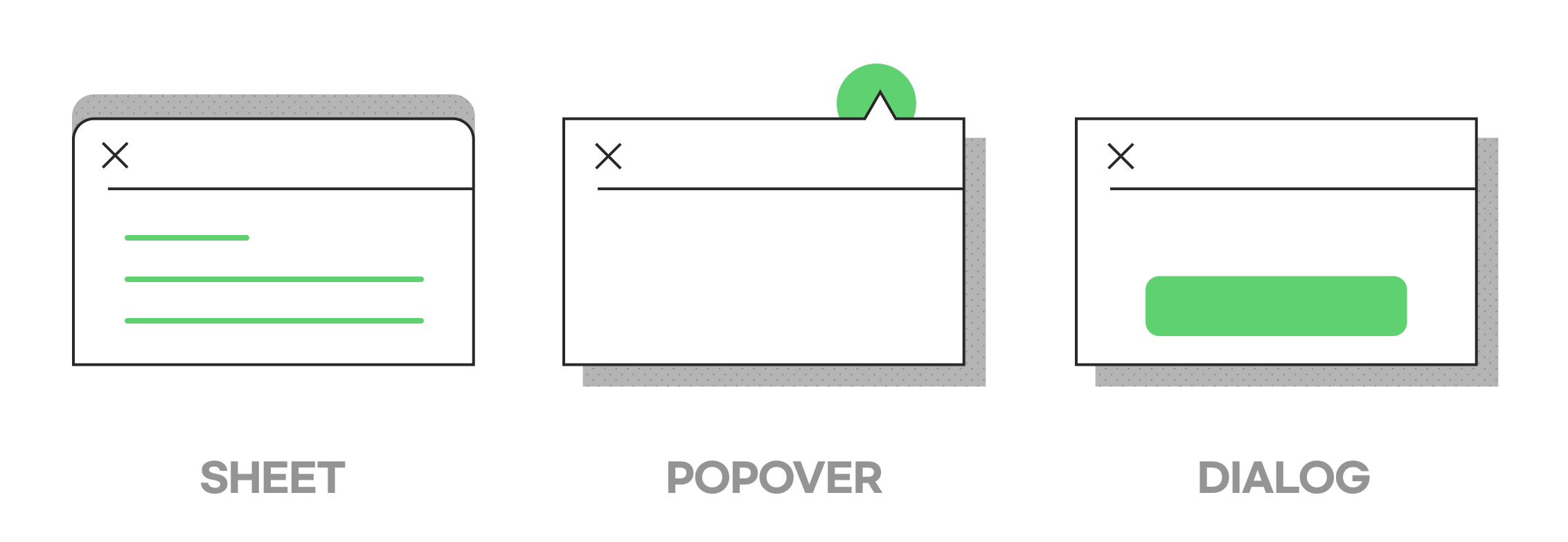 Sheet 시트 / Popover 팝오버 / Dialog 다이얼로그