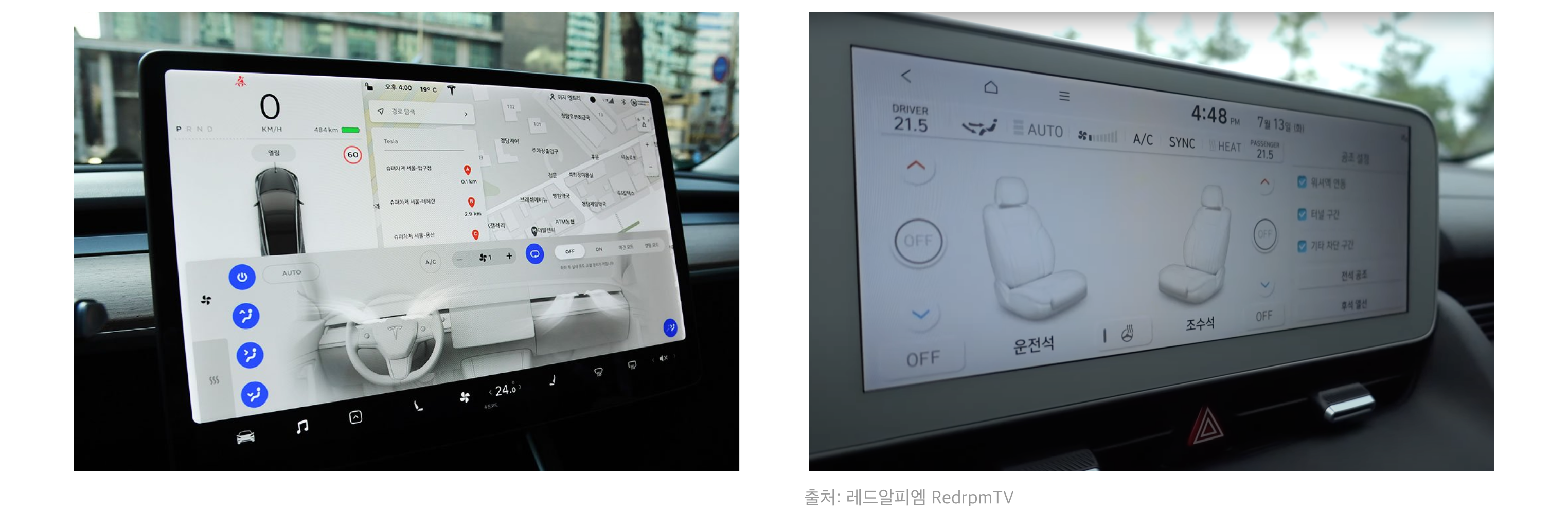 주행 중 엉따나 에어컨을 수시로 조절하는 건 흔한 Task 중 하나예요. 하드 키가 있다면 버튼만 누르면 끝이지만, 이 마저도 디스플레이로 들어오게 되면서 어떤 방식으로 '공조(실내의 온습도, 기류, 청정도를 조절하는 것)'를 제공할지가 핵심으로 다가오는 거 같아요.