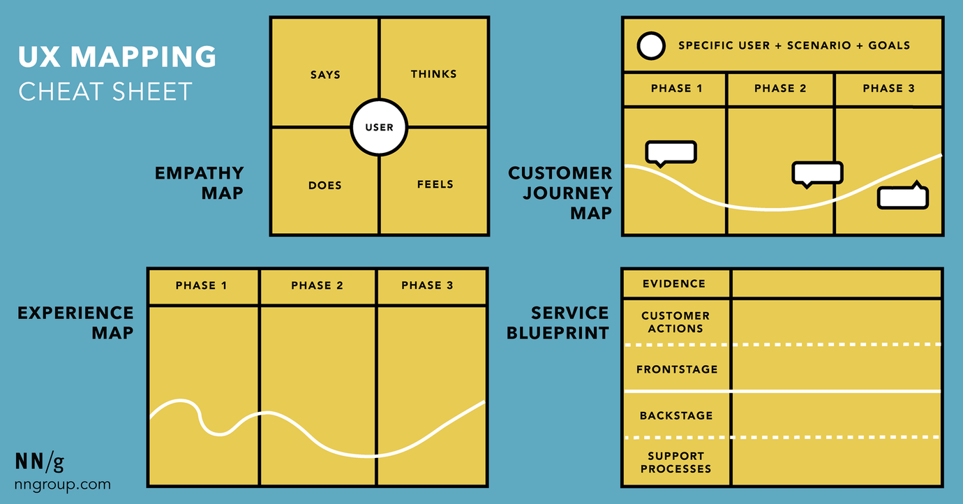 원문: https://www.nngroup.com/articles/ux-mapping-cheat-sheet/