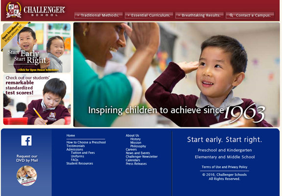 이미지와 페이지 내용은 웹사이트에 대한 기대를 형성에 중요합니다. 만약 이러한 기대가 충족됐다면, 전반적인 경험은 부드럽고 기쁠 것입니다. 그러나, 그 가정이 잘못됐다는 것이 알게 됐을 때 사람들은 종종 이 사이트의 사용성이 형편없다고 받아들입니다. 아래 예시처럼, 사립학교 사이트의 홈페이지에는 이 학교가 유치원이거나 기껏해야 초등학교 1학년만 포함한다고 믿게끔 만드는 몇몇 어린아이들 사진이 있습니다. 사실 이 학교는 8학년까지 포함하는데 말이죠.