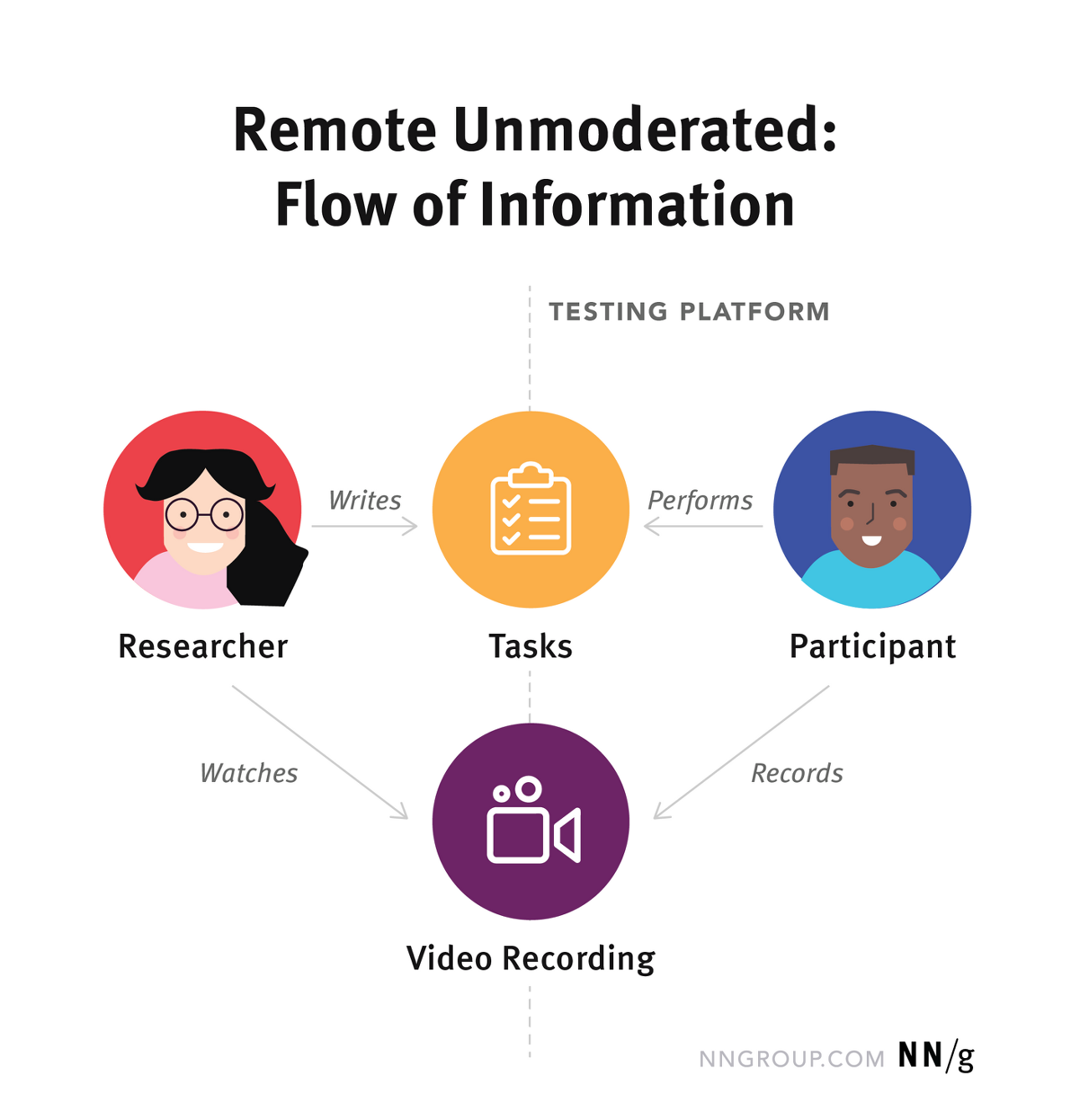Remote unmoderated remote usability tests (원격 비조정 사용성 평가)에서 진행자와 참여자가 상호작용할 수 없기 때문에 정보의 흐름은 변화합니다.