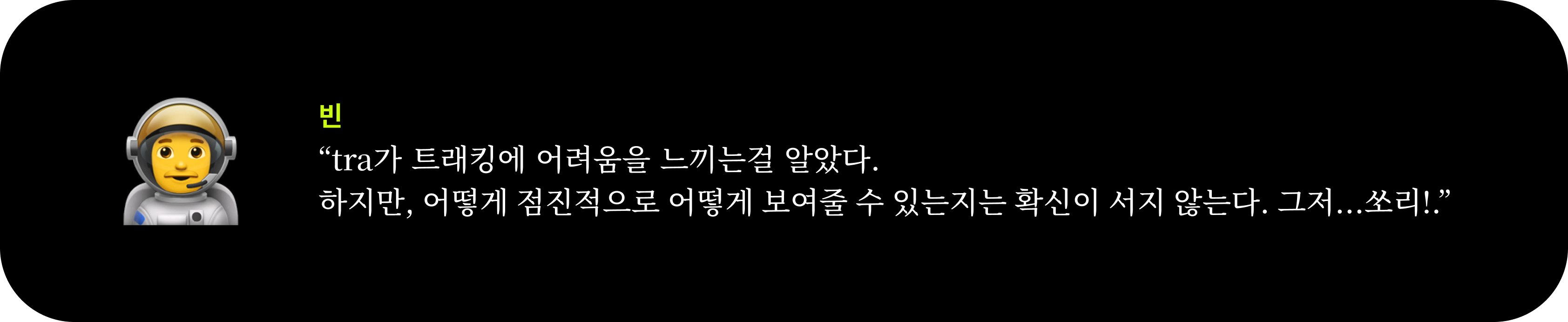 처음엔, 체계적으로 TC 같은 것을 만들지 않은 게 화근이라 생각했다. 미리 철저히 준비했더라면.. 급하게 처리하는 일은 적었겠지 하는... 조금의 자책이 있었다. 빈은 생각이 달랐다. 이런 일은 항상 일어날 수밖에 없는 일상다반사라는 것이다.