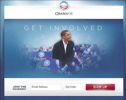 예를 들어 오바마 대선 캠페인 사이트 (Obama.org)의 가장 큰 장애물은 이메일 주소 수집을 위한 '가입'절차이다. 오바마 대선 팀의 성공 척도는 이메일을 보낸 사람들로부터 많은 기부금을 받는 것이며, 이메일을 보내기 위해서는 이메일을 수집해야 했다. 실제로 사이트 방문객의 상당수가 가입단계에서 이탈하여 목표한 기부금을 달성하지 못할 뻔하였으나, 이메일에서 기부할 수 있는 금액을 높이면서 이를 해결하였다.