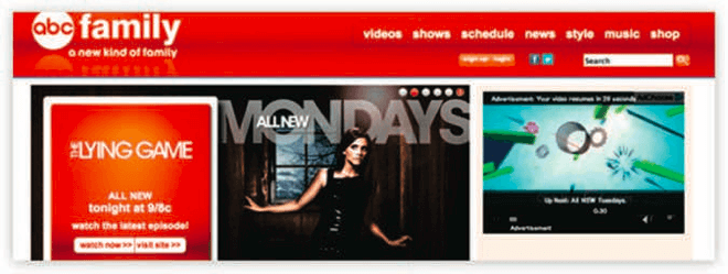 ABC 패밀리 기존 홈페이지에서는 사용자들이 흥미 있어할 만한 TV쇼의 큰 광고 배너를 보여주고 있었다.
