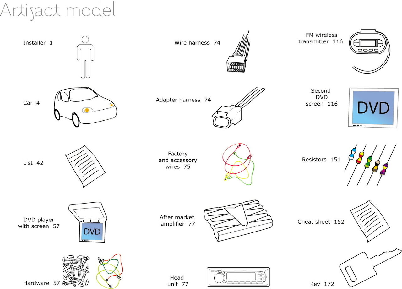 - 사용자가 직무를 수행하면서 만들거나 전달하거나 또는 참고하는 실제 사물 또는 전자 장비들의 사본(샘플) - 업무 구조에서 구별되는 특징과 아티팩트의 내용을 드러냄. |