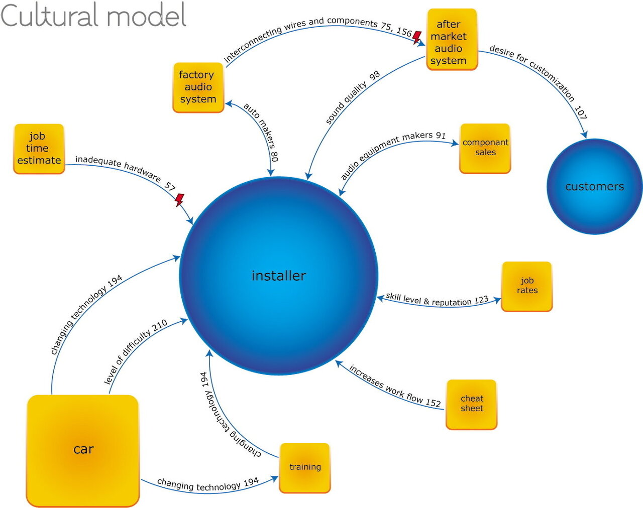 - 컨텍스추얼 인터뷰 도중에 피지컬 모델을 기록하고, 해석 세션을 진행하면서 이를 다시 그린다. |