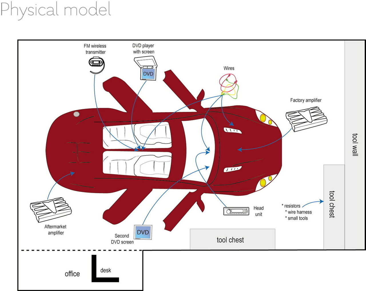 해석하기 전에 시간을 절약하기 위해 피지컬 모델을 미리 그려본다. |