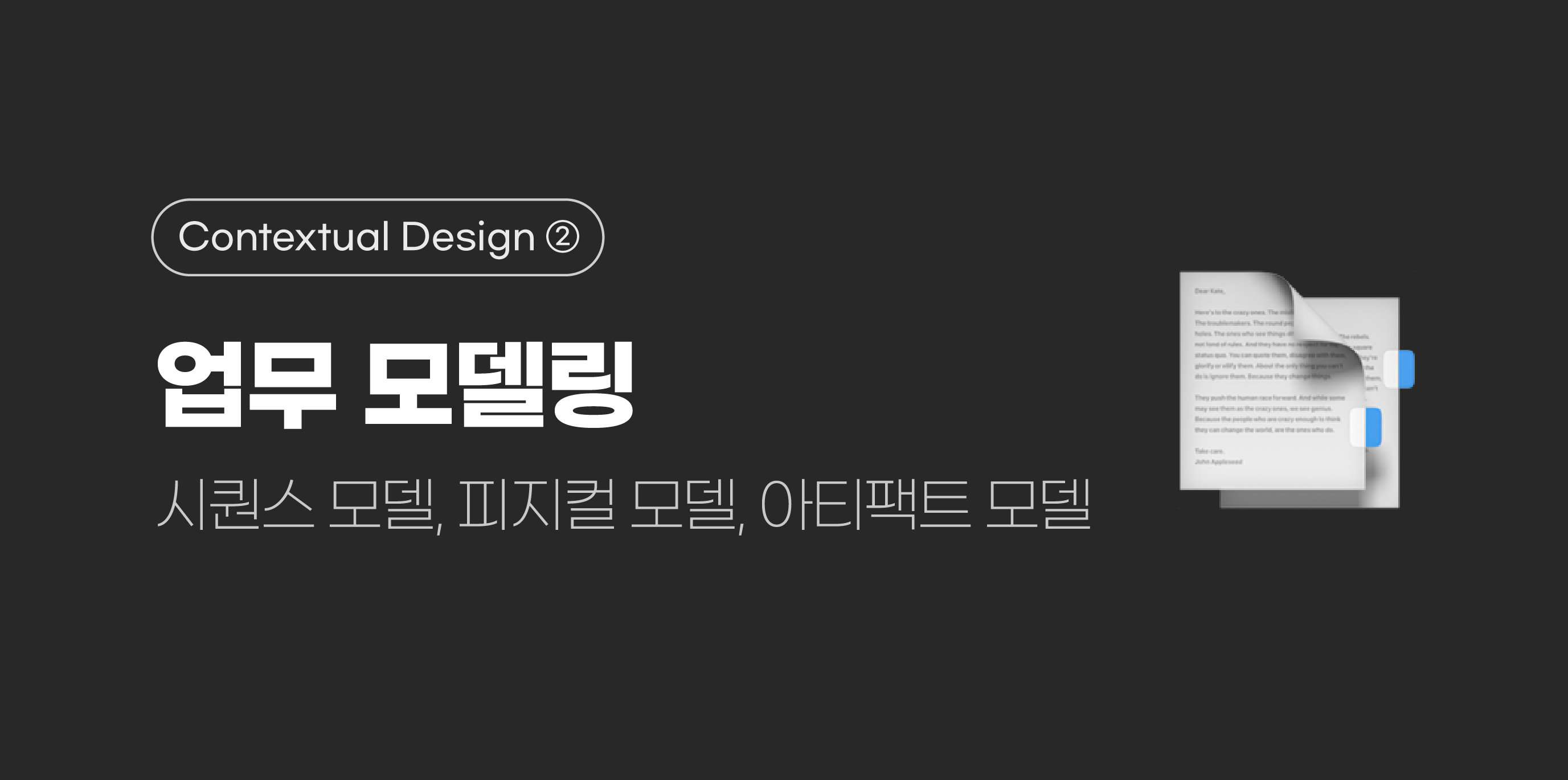 업무 모델에는 여러 종류가 있다. 그중 시퀀스 모델, 피지컬 모델, 아티팩트 모델이 가장 대표적이다.
