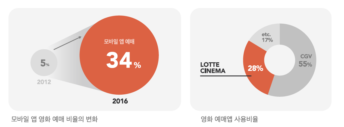 • 모바일 영화 앱 사용자는 700% (7배) 증가했을 정도로 꾸준한 성장을 이뤄오고 있습니다. (2012년 대비 2016 기준)