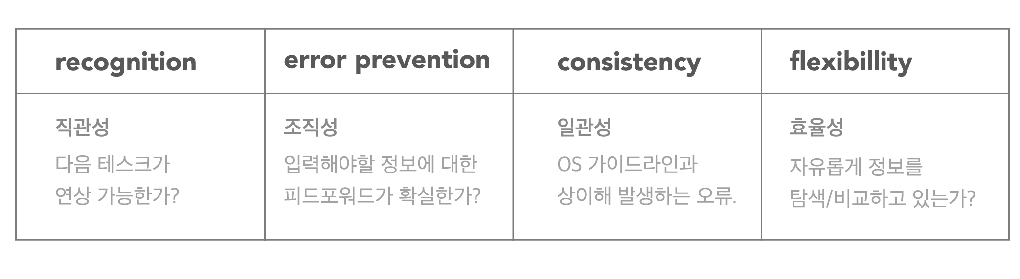 📌오류 기준 : 직관성, 조직성, 일관성, 효율성 측면에서 평가 기준 계획 (아래 이미지 참고)