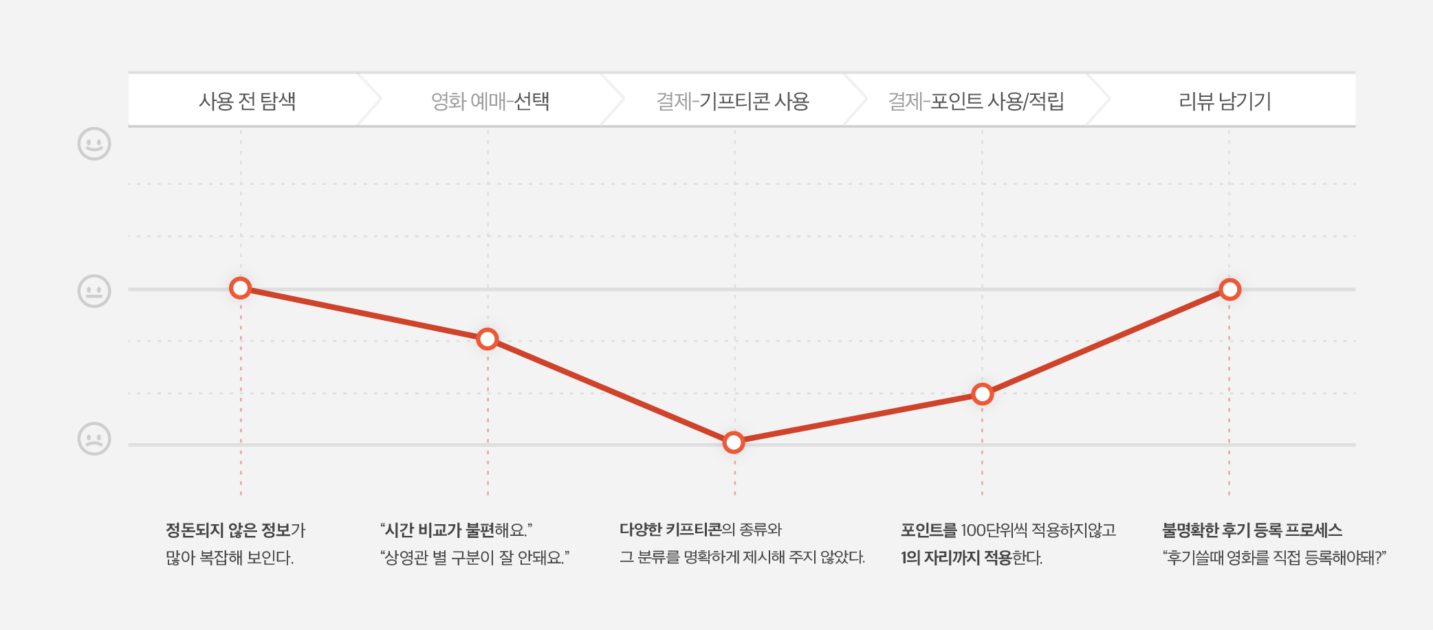 사후 설문과 인터뷰를 통해 Task 프로세스 전반에 걸친 사용자의 낮은 만족도를 확인할 수 있었습니다.