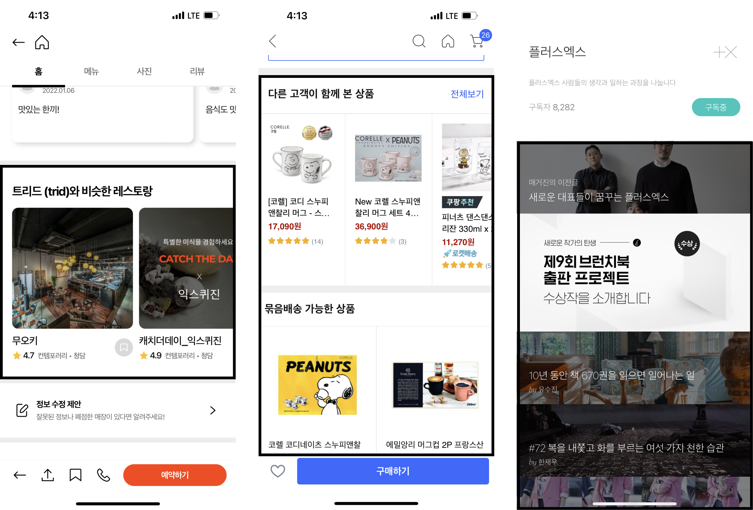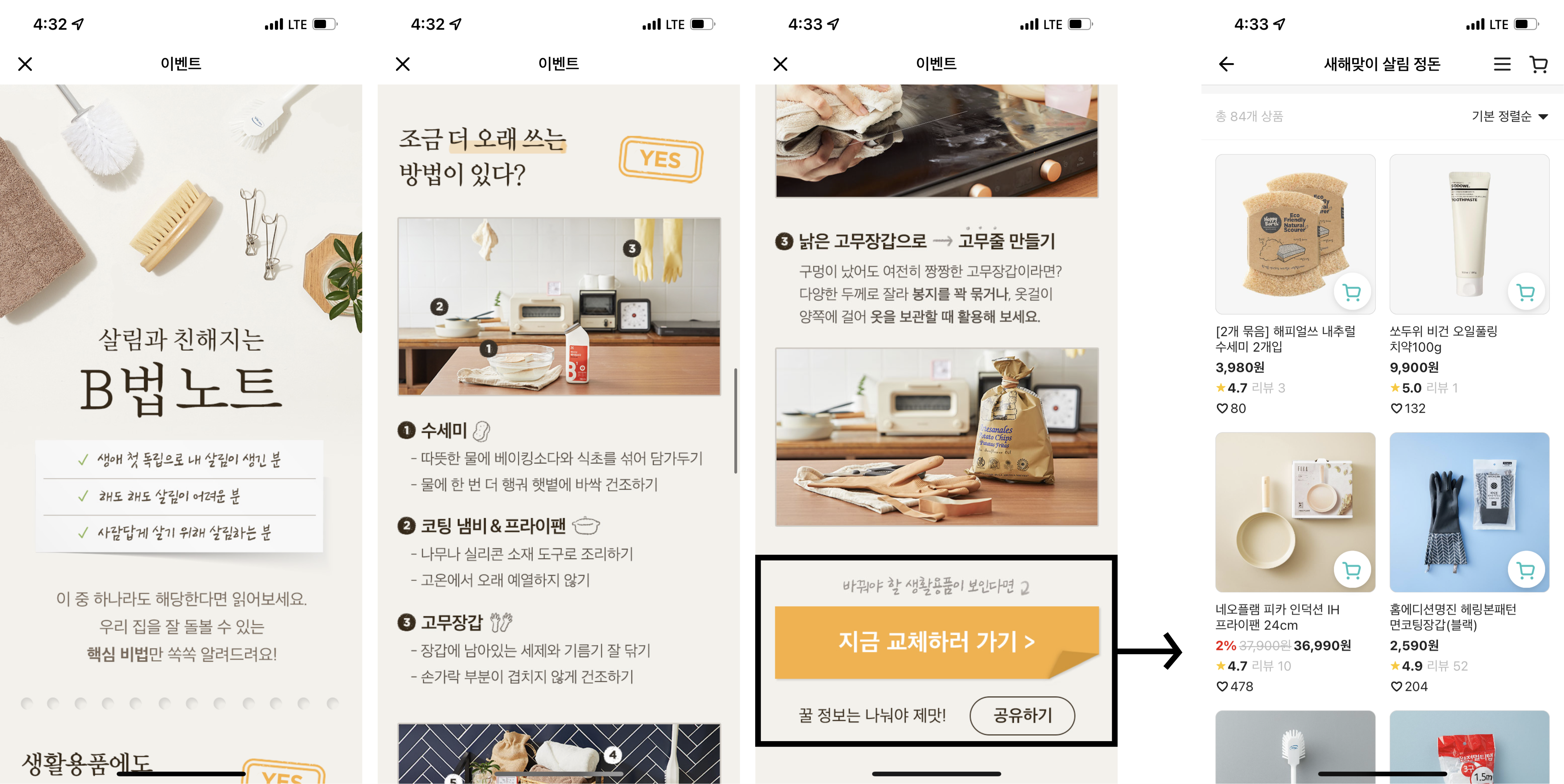 동일한 주제, 연관 주제, 다른 사이트의 상세 페이지로 이어질 수 있다. 쇼핑몰이나 미디어 서비스에서 자유 활용하고 있는 레이어링 방법이다. 쿠팡은 스크롤 하단에서 [다른 고객이 함께 본 상품]과 [묶음배송이 가능한 상품]을 보여준다.