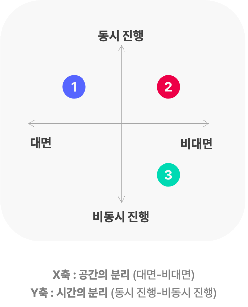 UT는 대면-비대면 / 동시 진행-비동시 진행에 따라 크게 3가지 유형의 UT로 구분할 수 있다.