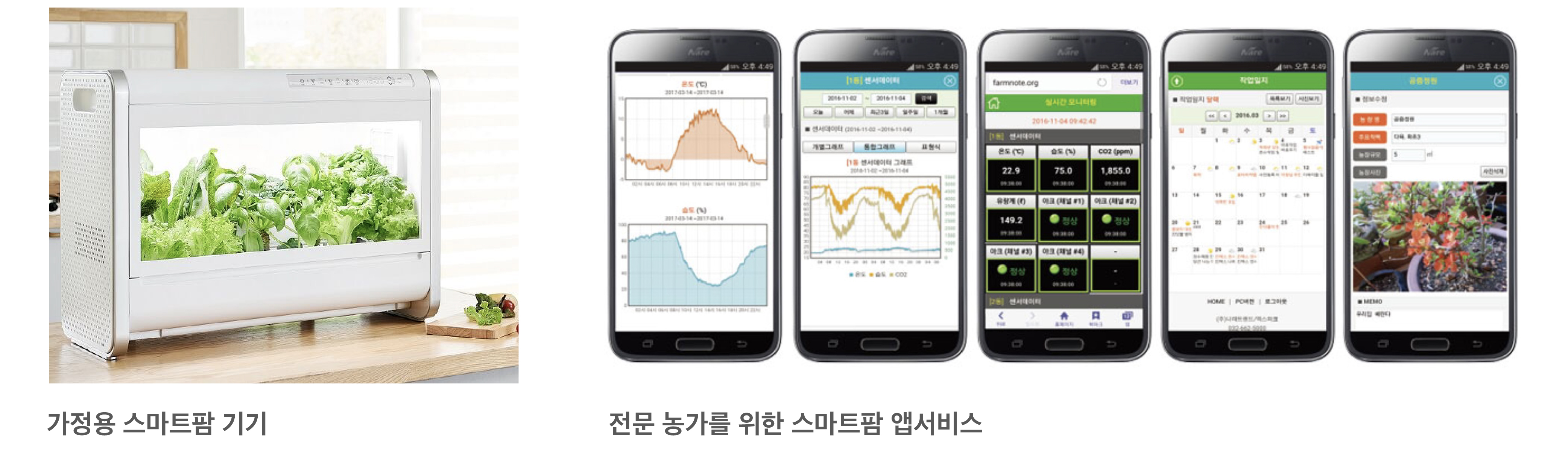 스마트 팜은 IoT 기술을 이용하여 농작물 재배 시설의 온도 · 습도 · 햇볕량 · 이산화탄소 · 토양 등을 측정 분석하고, 분석 결과에 따라서 제어 장치를 구동하여 적절한 상태로 유지하는 지능형 농장을 의미합니다. 농업의 생산 · 유통 · 소비 과정에 걸쳐 생산성과 효율성 및 품질 향상 등과 같은 고부가가치를 창출합니다.