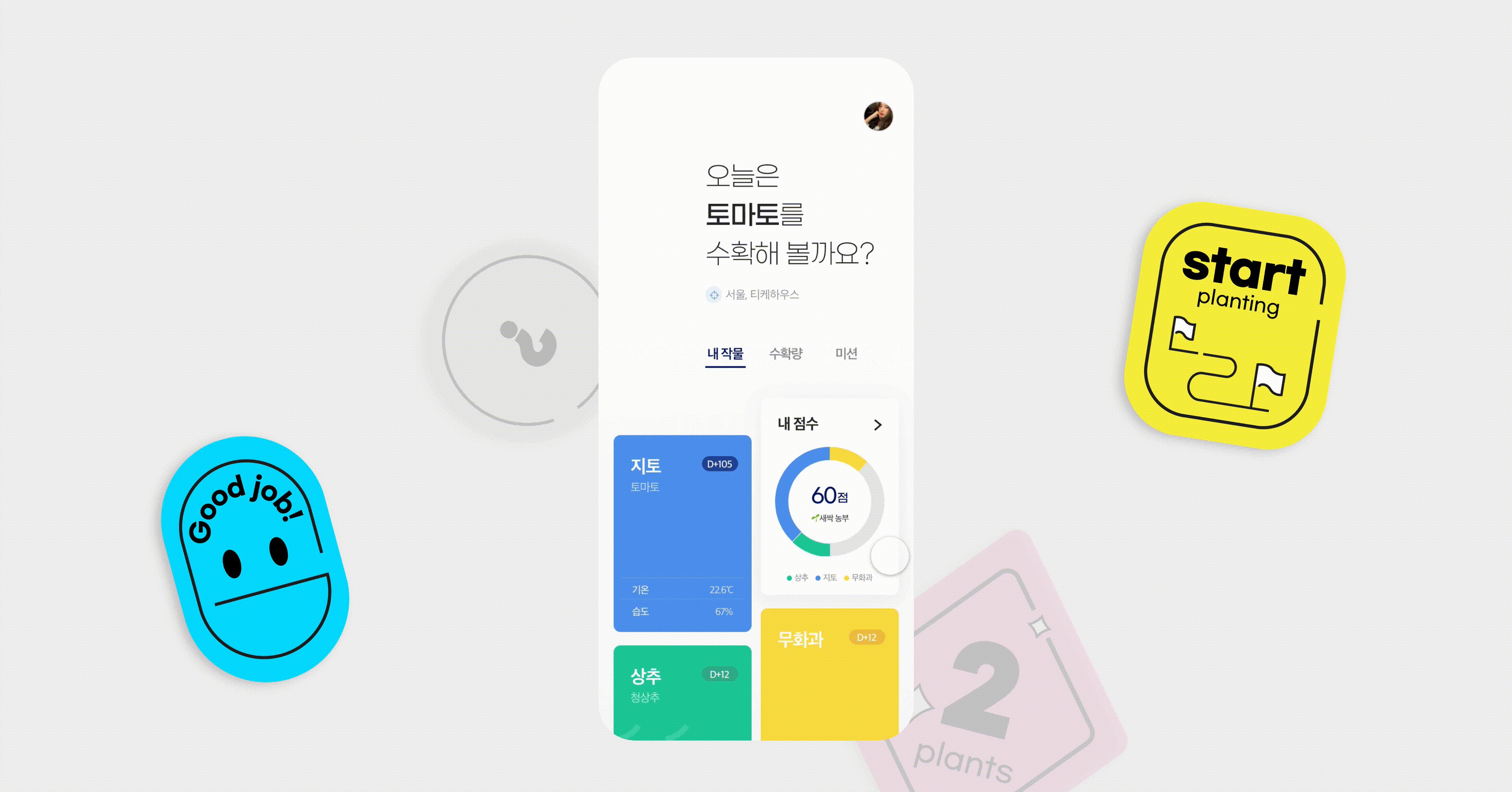 작물의 수확일이 다가오면, 사용자에게 알림을 보냅니다. 수확 후, 작물의 상태에 따라 내 점수를 확인하고, 배지를 모으며 즐거운 홈 파밍을 진행합니다.