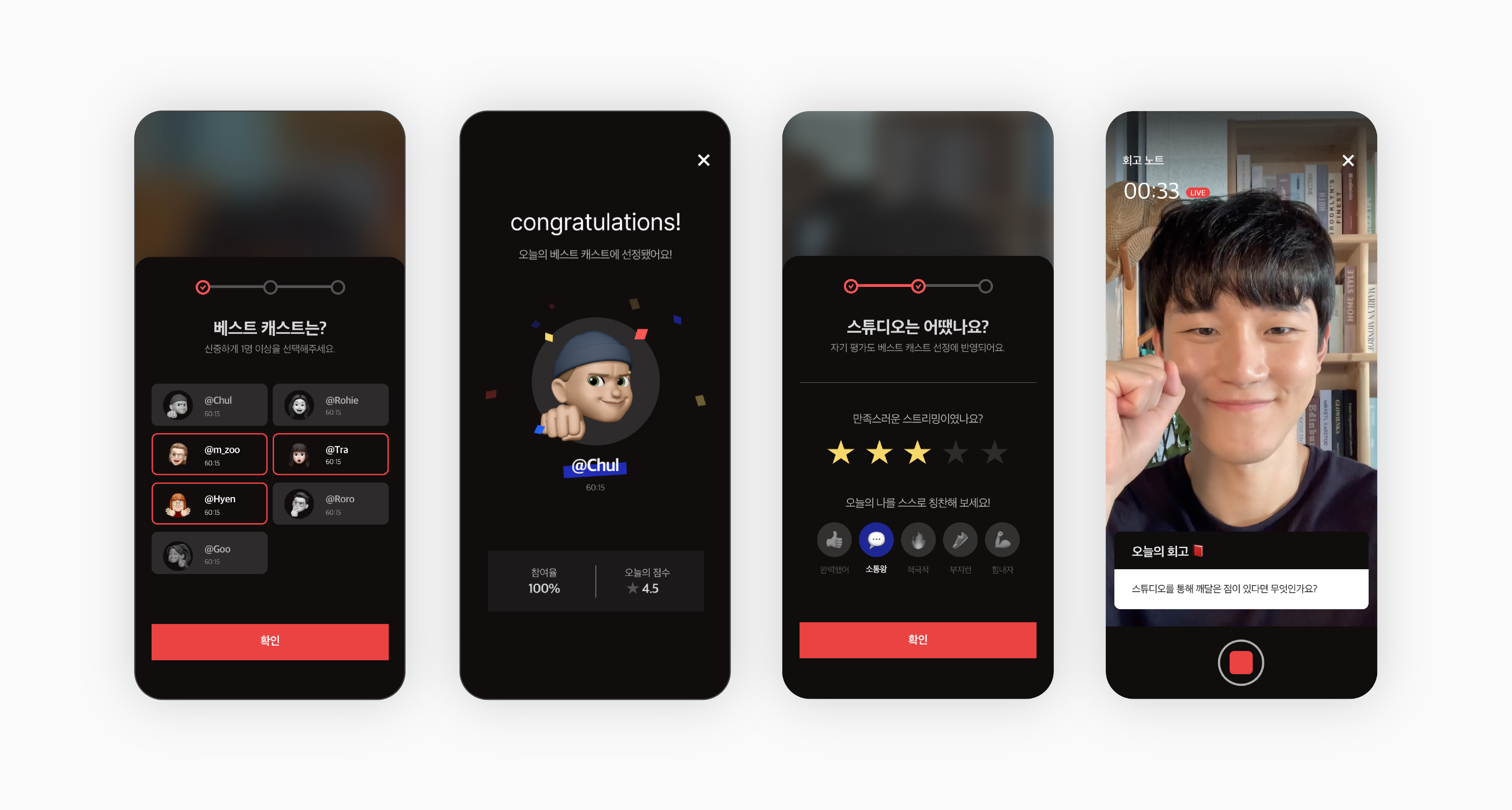 4. 스트리밍이 종료된 후 오늘 스튜디오의 베스트 캐스트를 선정하고, 자기 평가를 진행한다.