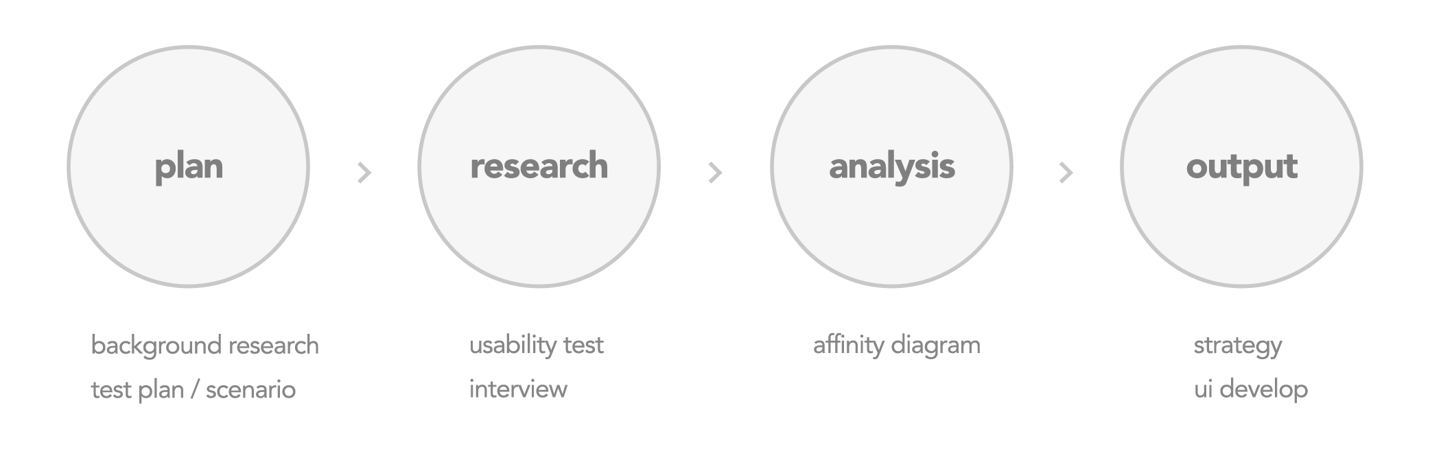사용자 배경 시나리오와 테스크를 설정해 사용성 평가를 진행했습니다. 2회의 파일럿테스트를 진행하여 순차적 사용 흐름을 기반으로 최종 시나리오를 설정했습니다.